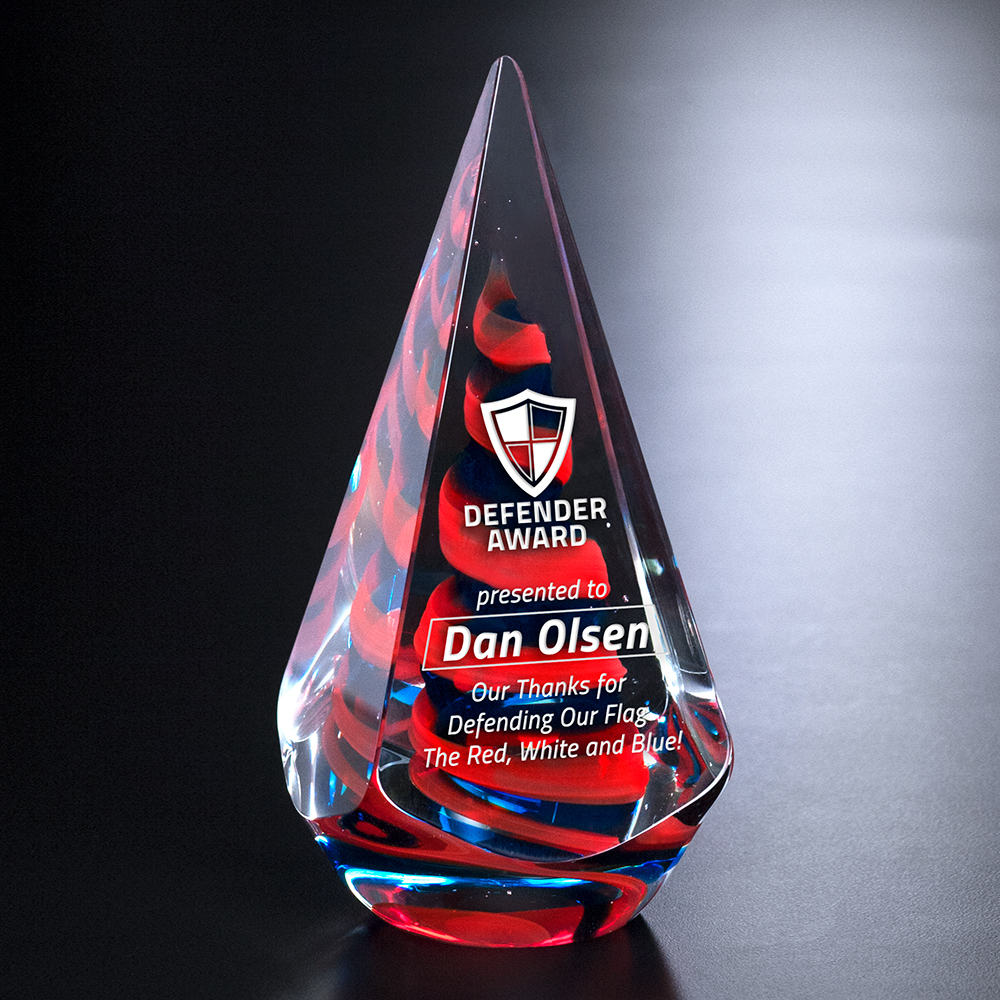 Red Swirl Pyramid Art Paperweight